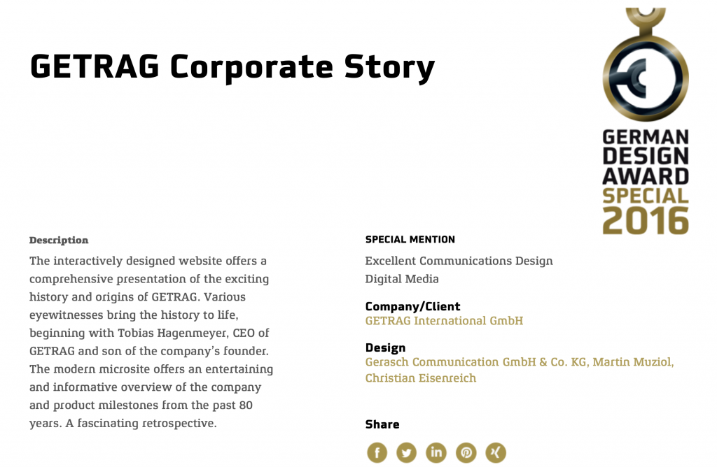 One of the first interdisciplinary and international projects within this network, and the basis for a new global branding approach, was to go back in history to the essence of GETRAG and why it all began. The result was an interactive multi-channel storytelling, online and offline, which later won the German Design Award 2016.
