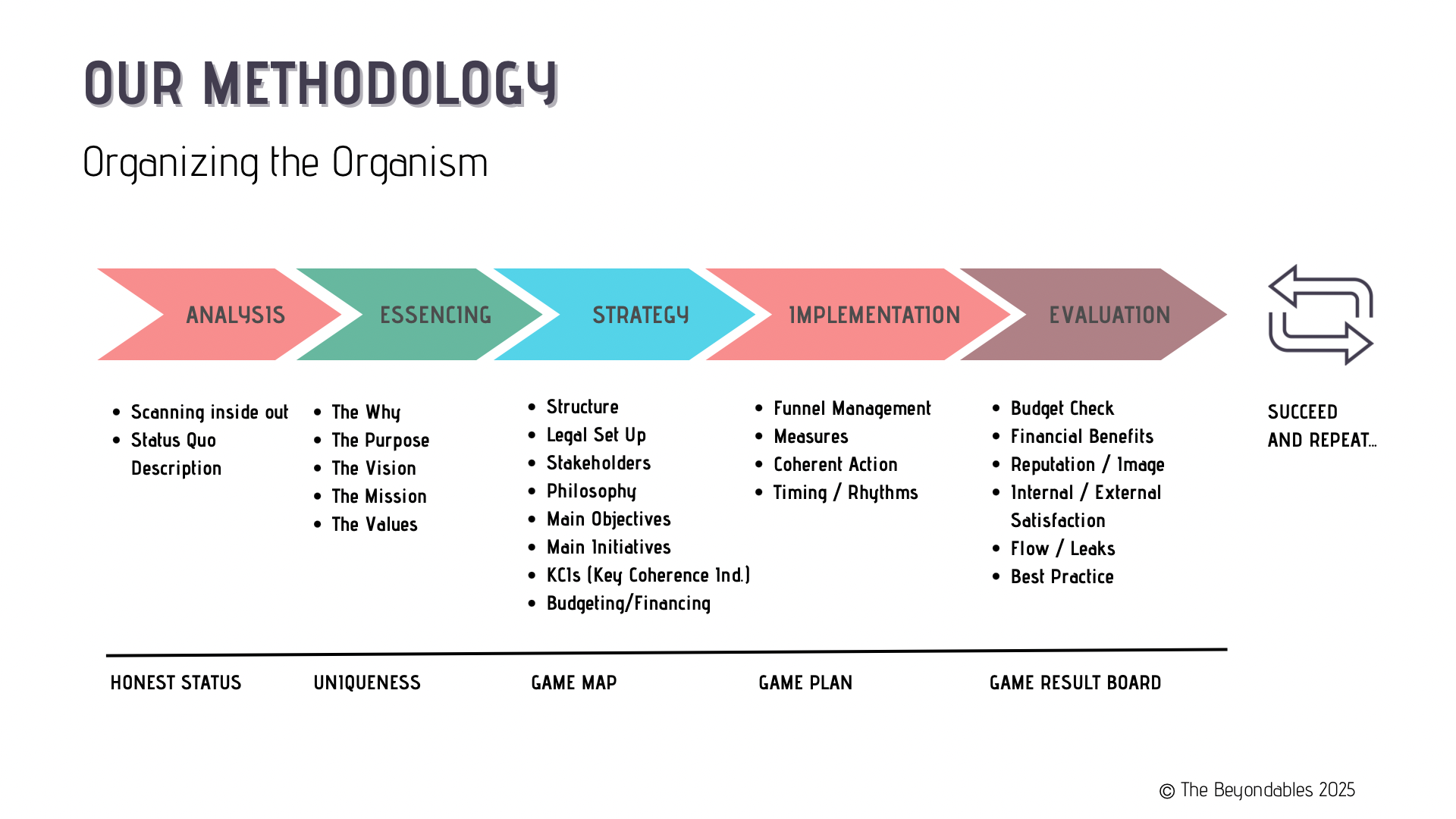 The methodology underneath is simple and alive. A continuous cycle of observing, learning, evolving, and growing. We interact with everyone involved, openly and in all directions. Through this process, people quickly find their own navigation. They do not follow instructions. They become co-creators.